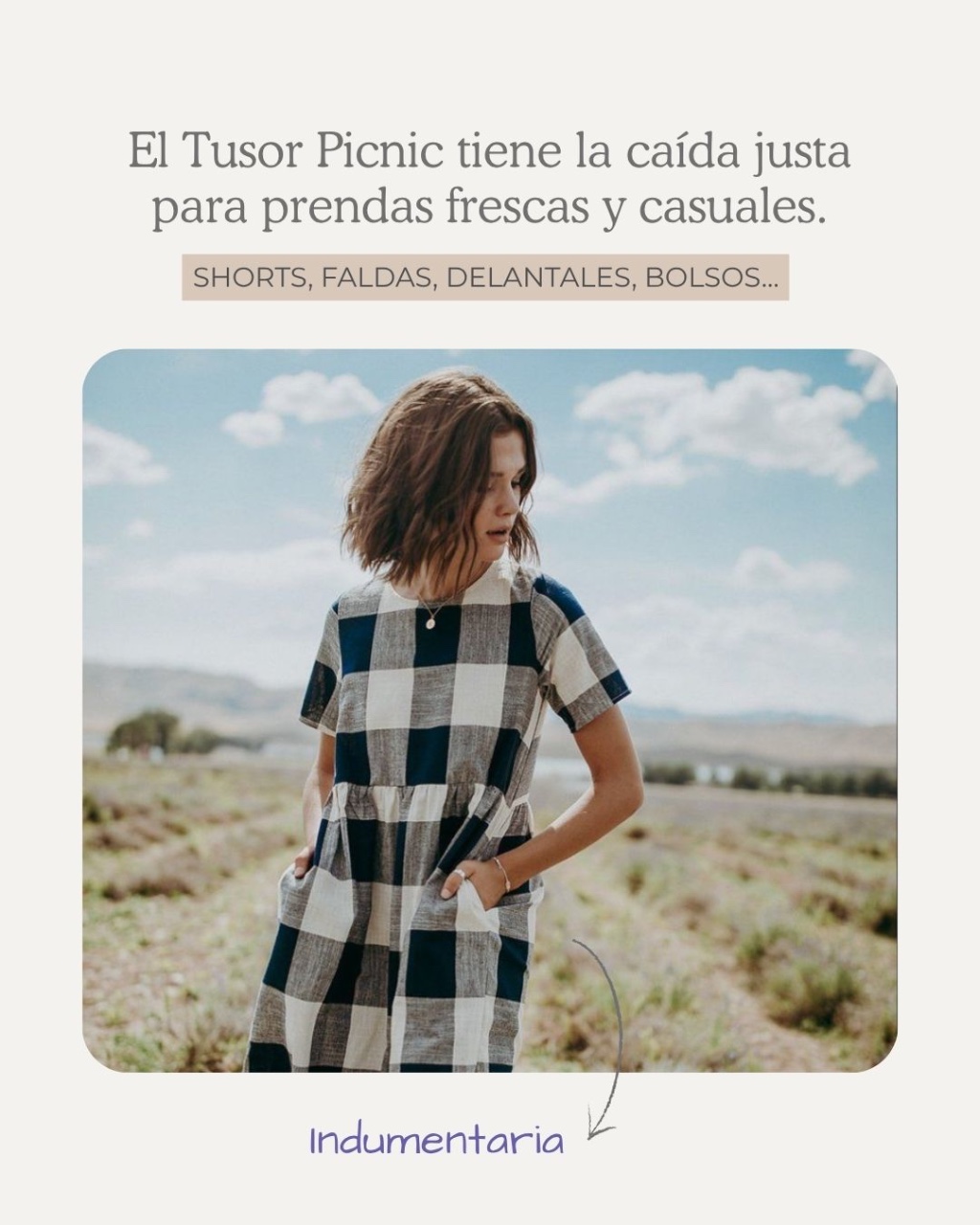 👗 3. Indumentaria y accesorios: shorts, faldas, delantales o bolsos. El Tusor Picnic tiene la caída justa para prendas frescas y cómodas, con ese aire artesanal que nunca pasa de moda.