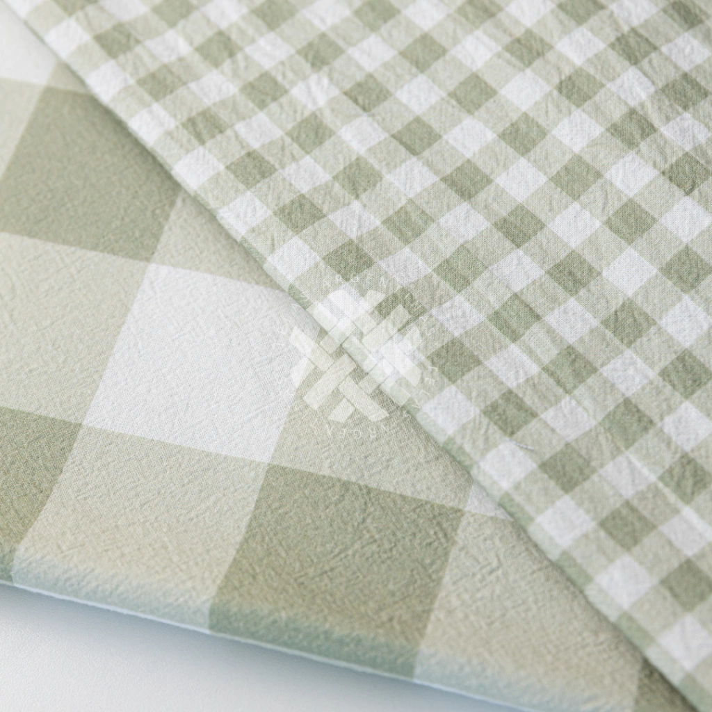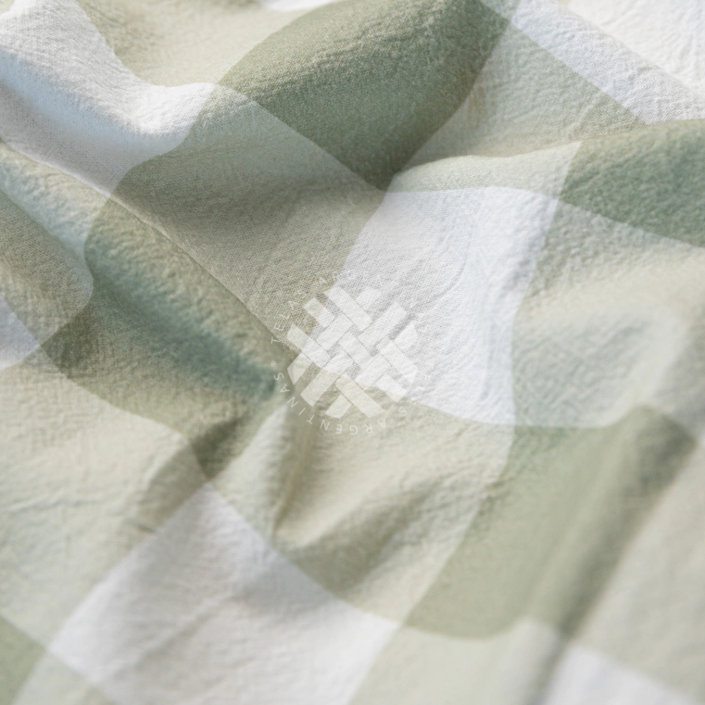 Nuestro Tusor es un tejido resistente y duradero. Fabricado con fibras naturales de algodón. Aporta suavidad y firmeza. Es versátil y funcional. Tiene un efecto ligeramente arrugado y un diseño a cuadros.