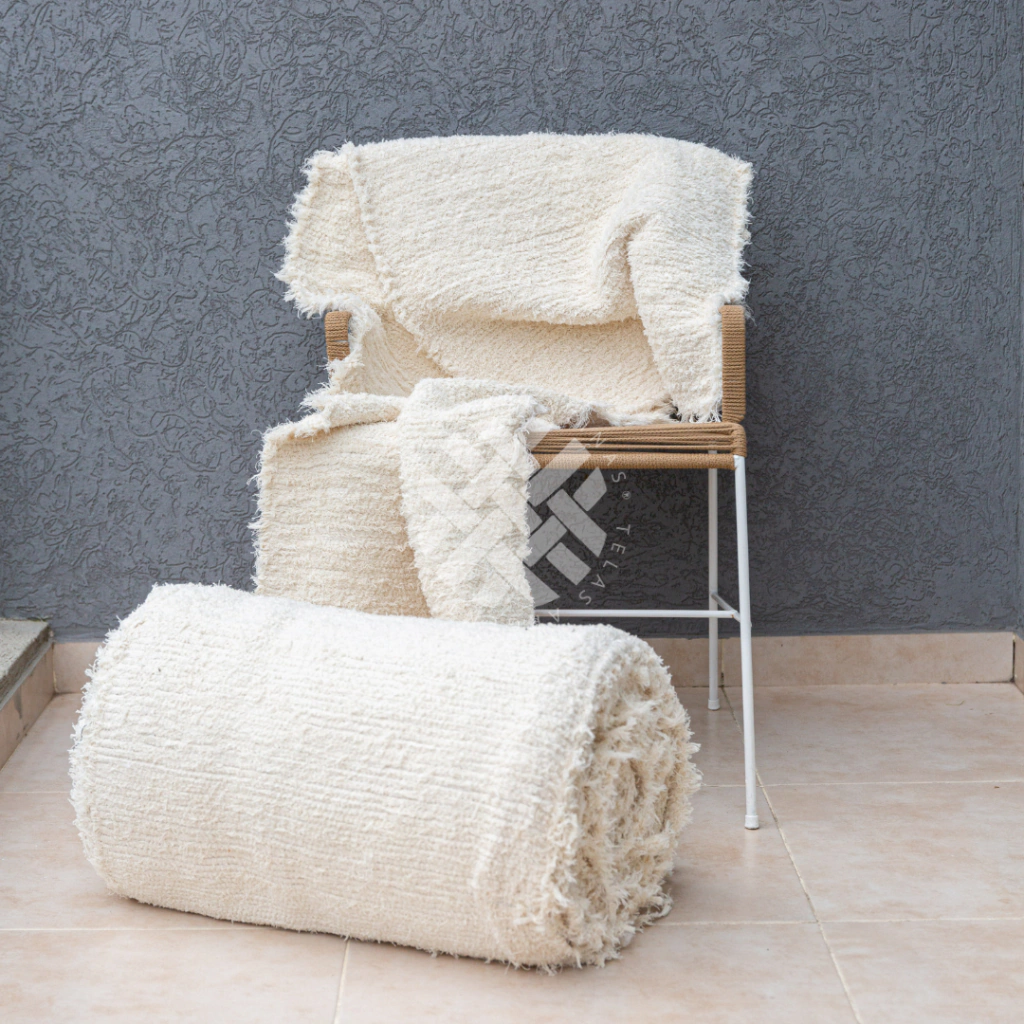 Nuestra alfombra de estopa está confeccionada manualmente utilizando el desperdicio de nuestras telas. Hecha con fibra de algodón, es súper suave y mullida. La venta se realiza por rollo.
