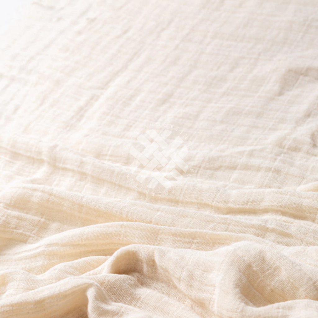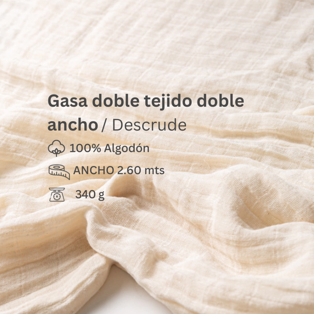 También denominada como "gasa pañalera". De tejido doble y un efecto más arrugado. Se caracteriza por su suavidad, es ideal para confeccionar prendas de vestir, de adultos y niños. También es muy utilizada en decoración.