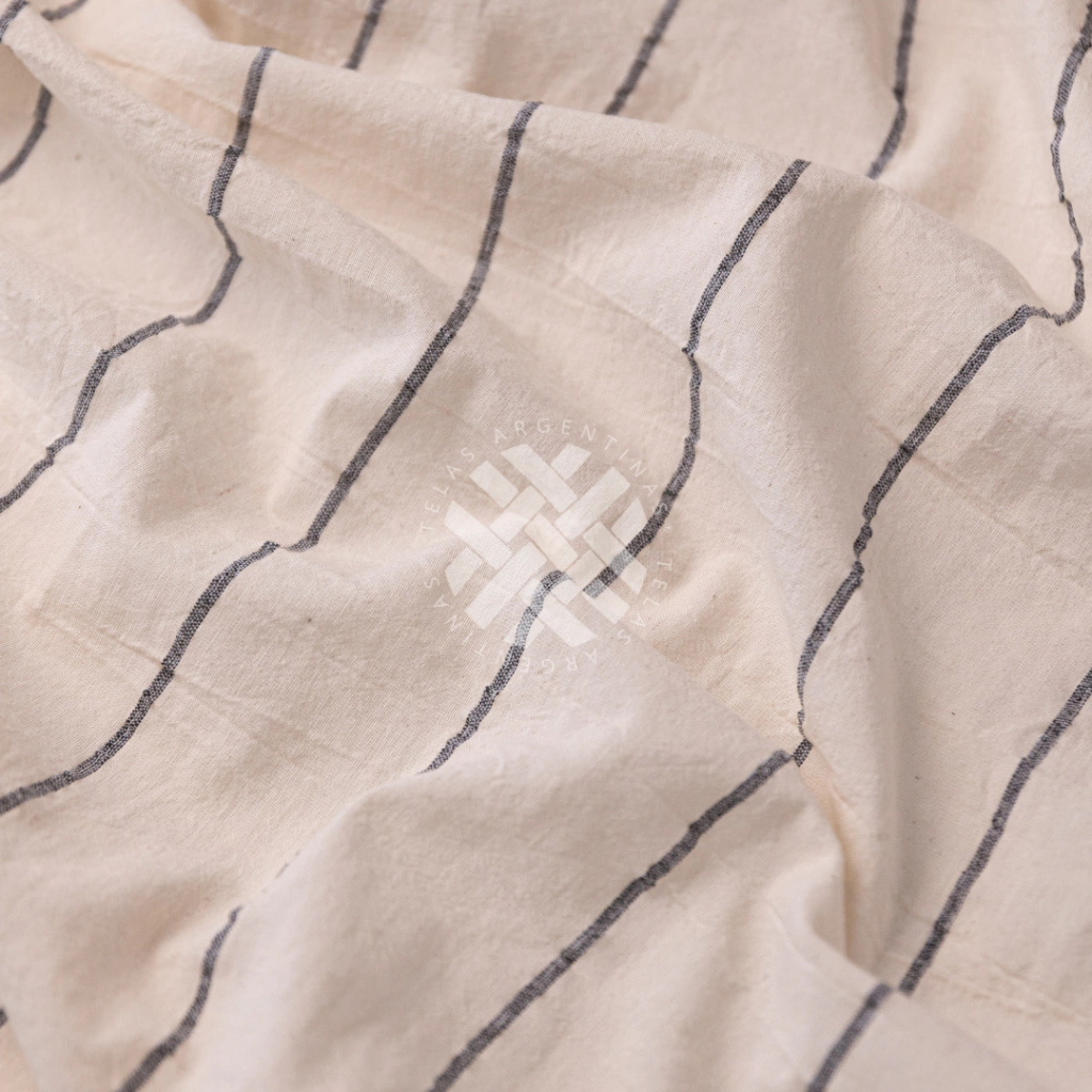 Nuestro Tusor es un tejido resistente y duradero. Fabricado con fibras naturales de algodón. Aporta suavidad y firmeza. Es versátil y funcional. Tiene un efecto ligeramente arrugado y un diseño a rayas.